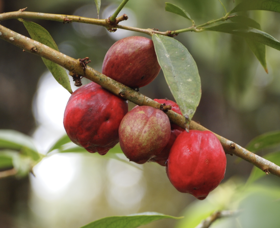 Mahkota Dewa (Phaleria macrocarpa), or “God’s Crown,” is a small, evergreen, medicinal shrub native to Indonesia. It grows 3-18 meters tall, featuring dark green, glossy leaves and small, white, fragrant, trumpet-shaped flowers. The plant is prized for its bright red, round, poisonous fruits—used only in dried form for traditional medicine—which grow directly on the stem.
