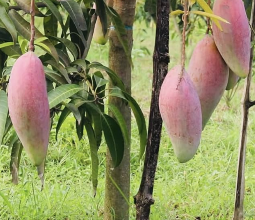 The Red Ivory mango (also known as Jingu ivory) is a rare, exotic, and jumbo-sized cultivar originating from Thailand, often weighing up to 2kg per fruit. It is characterized by vibrant red-and-yellow skin, fiberless and creamy golden-yellow flesh, and a sweet, fragrant aroma. These grafted plants are known for early, high-yield fruiting (within 2-3 years).